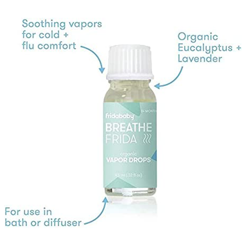 DROP IT WHEN THERE’S SNOT: Add drops to bath water or Fridababy 3-in-1 Humidifier, Diffuser + Nightlight for sick day comfort. COLD COMFORT: Deliver cold and flu season comfort with organic eucalyptus oils. KEEP CALM: Vapor bath drops help calm your baby and open airways so baby can breathe and sleep through the night. BREATHE EASY: Tackles snot and congestion, suitable for age 3 months and up. INCLUDES: 0.32 fl oz Vapor Drops